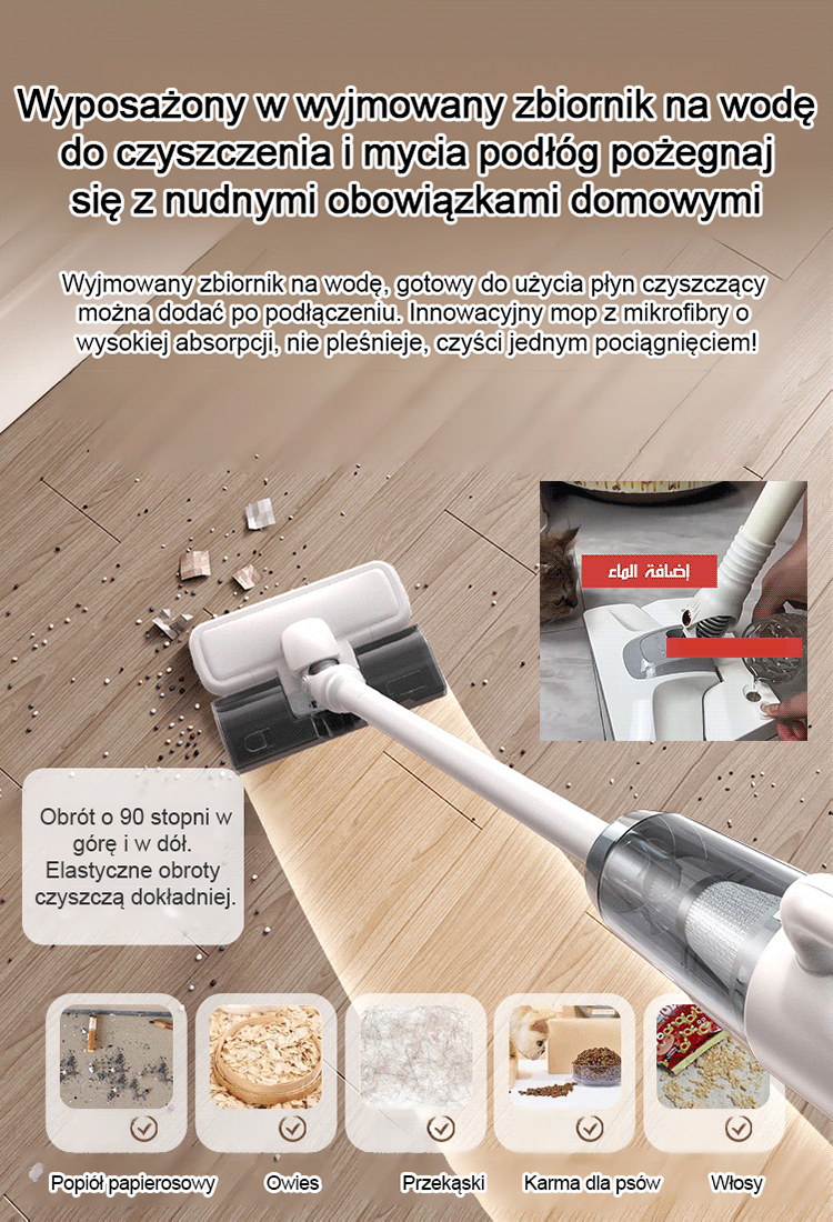 Duża maszyna odsysająca do usuwania roztoczy i mopująca